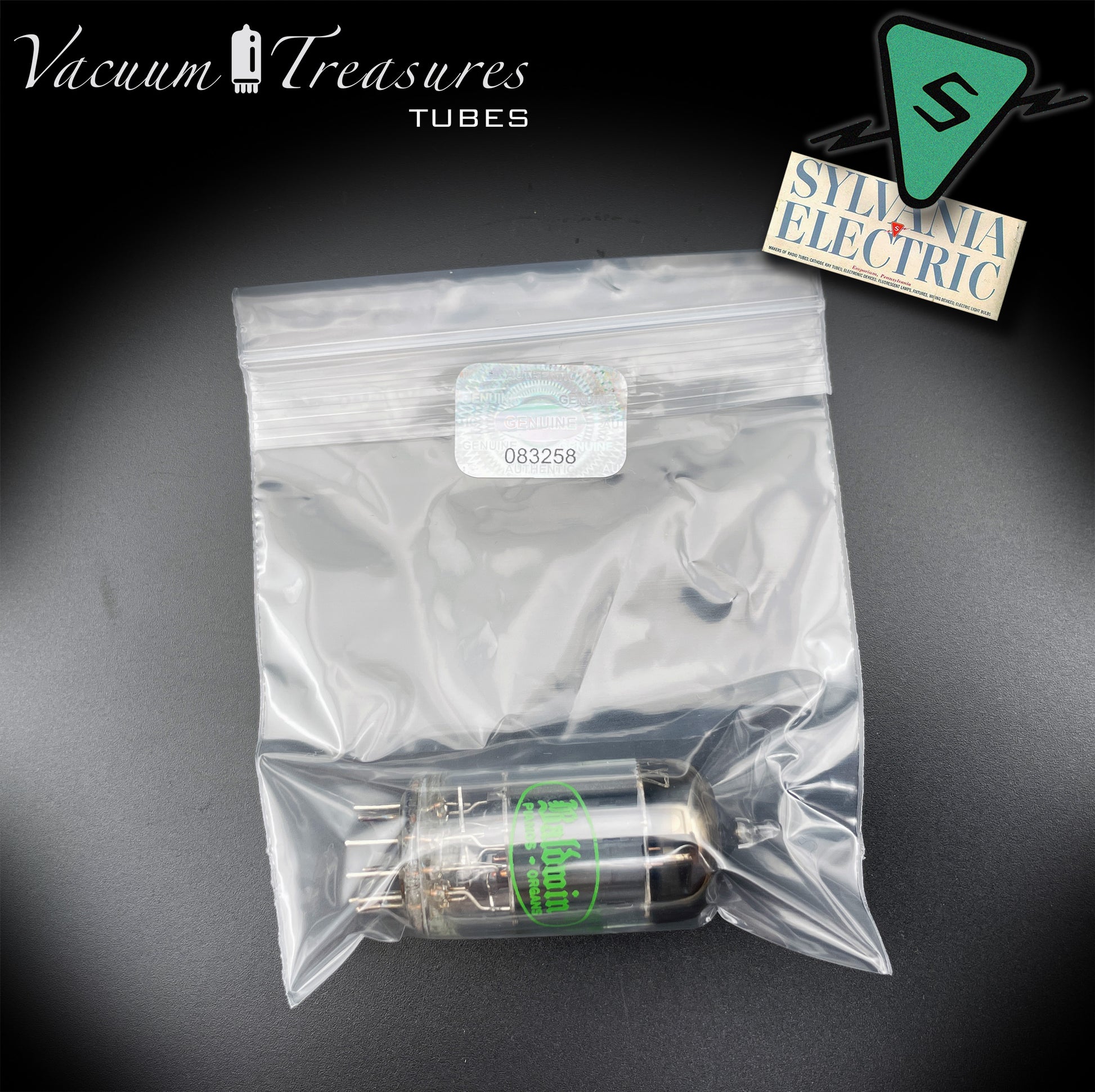 Questa 12AX7 (ECC83) Baldwin, prodotta da Sylvania nel 1949 e selezionata per l'uso negli organi Baldwin, è caratterizzata da piastre lunghe (Long Gray Plates) e Square Getter, una configurazione che contribuisce alla sua firma sonora distintiva. Il suo suono è caldo, pieno e ricco di armoniche, con un’eccellente musicalità e un carattere vintage tipico delle prime produzioni Sylvania.