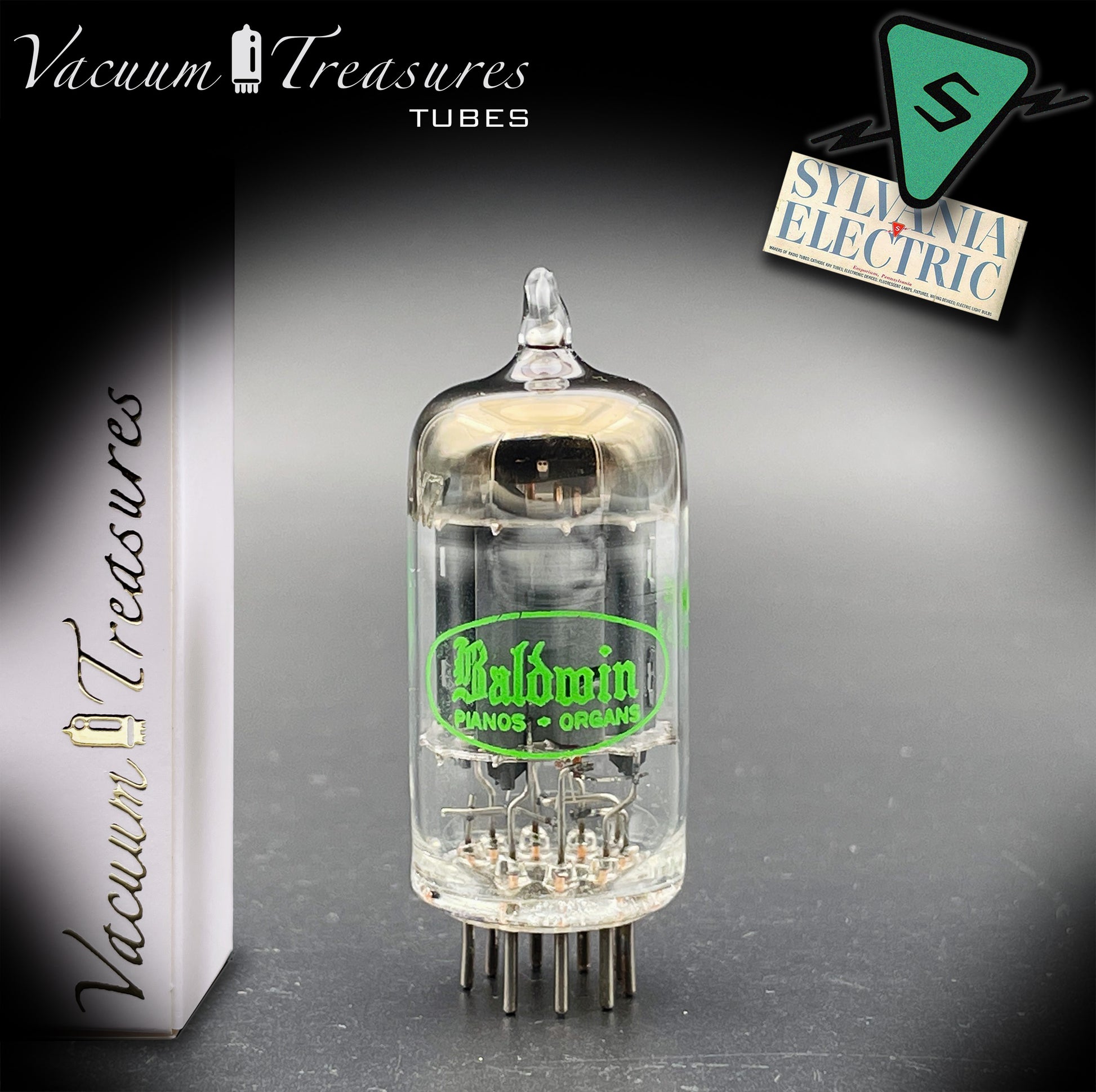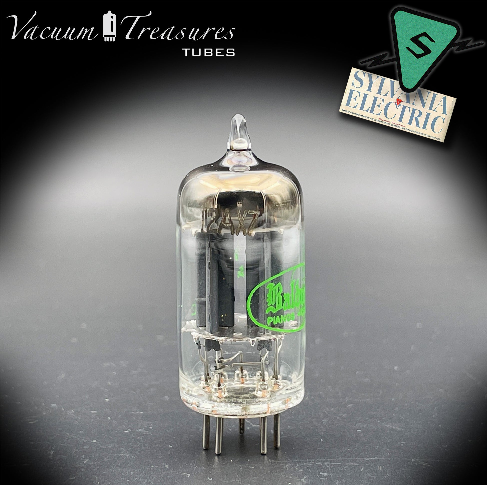 12AX7 ( ECC83 ) Baldwin by SYLVANIA Long Gray plates Square Getter Tested Tube Made in USA '49