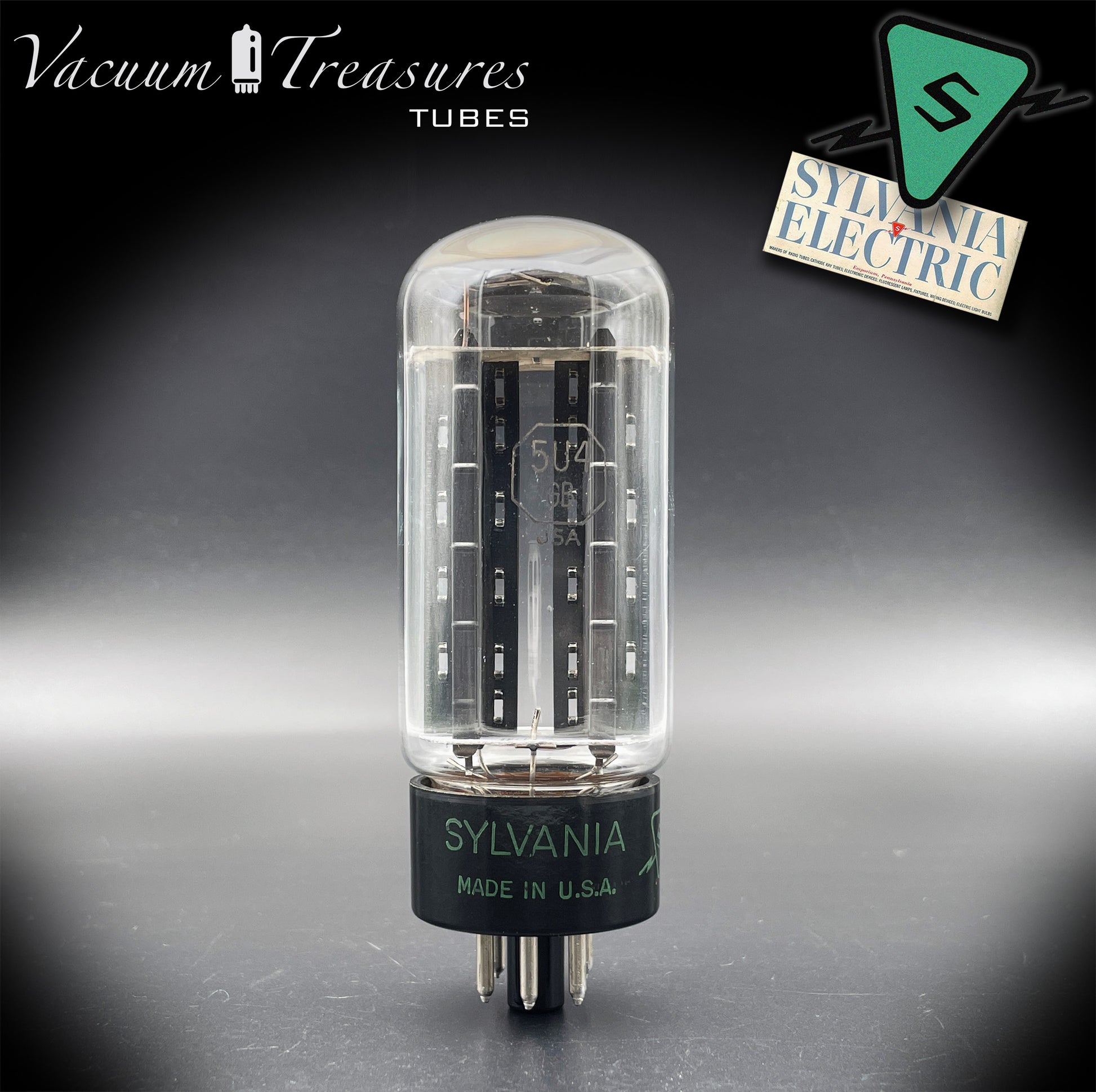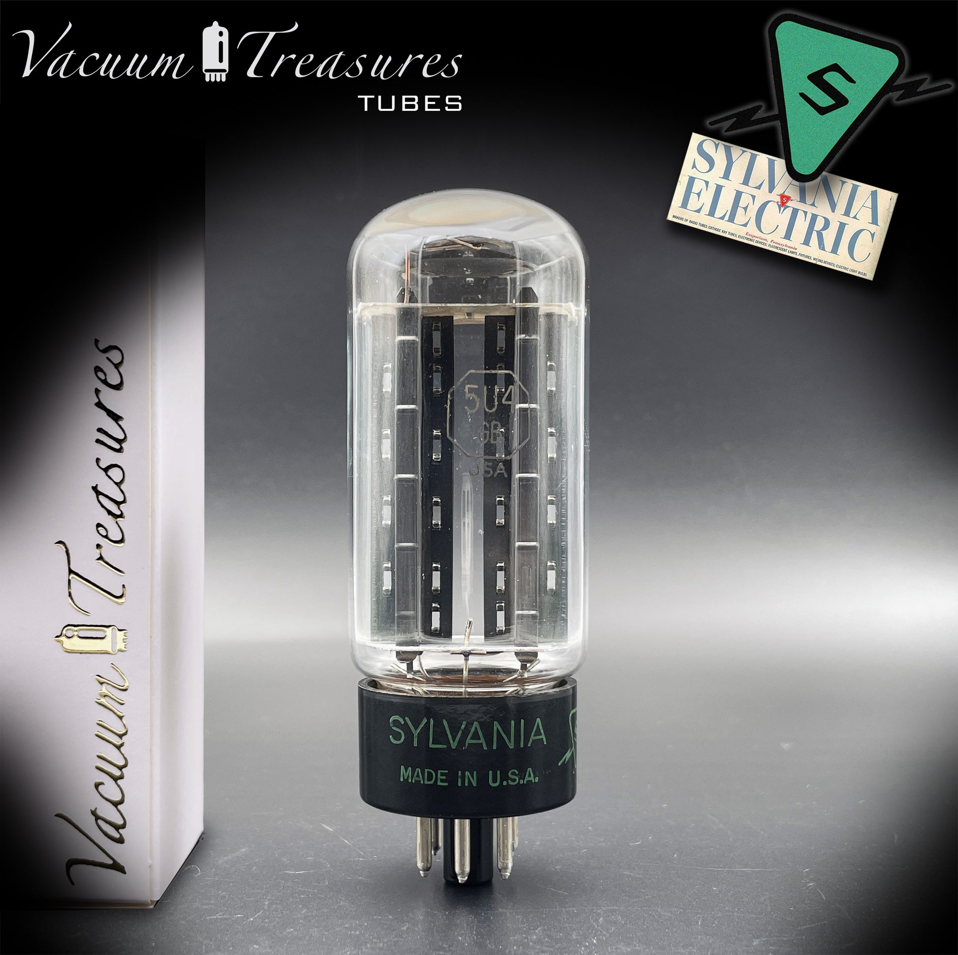 5U4GB 5AS4A NOS SYLVANIA Black Plates Square Getter Tested Tube Rectifier Made in USA 1946