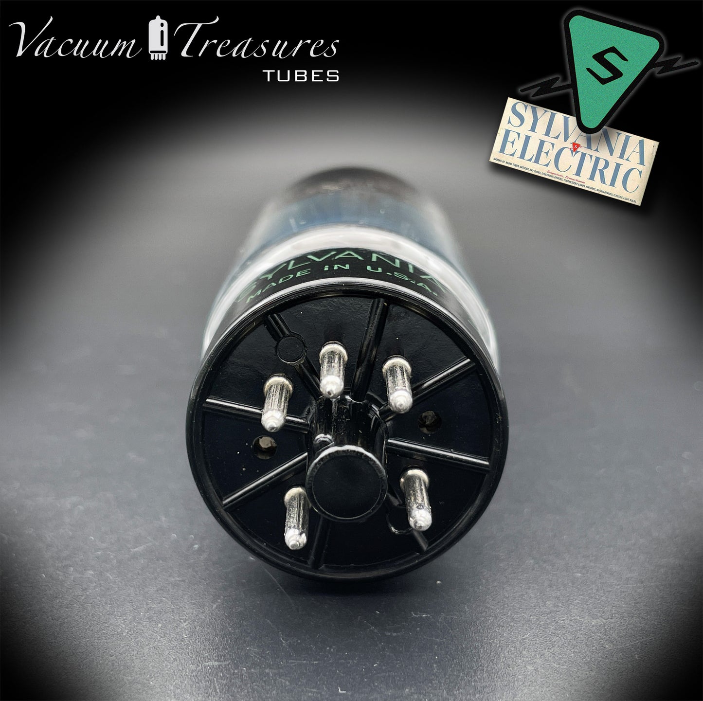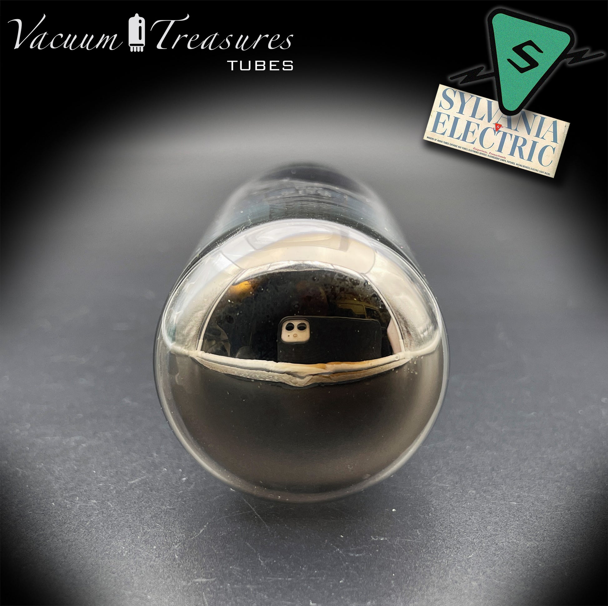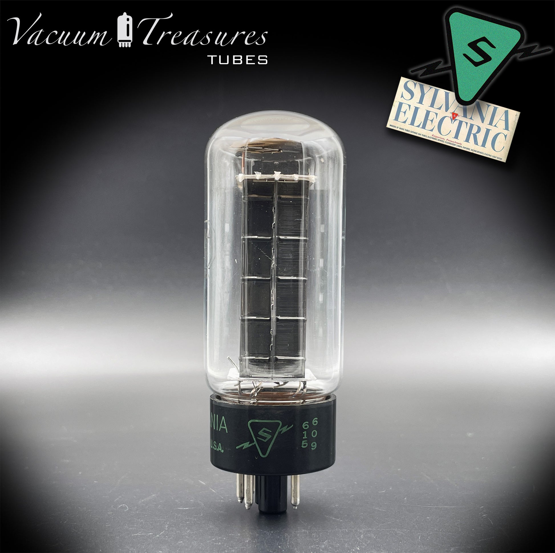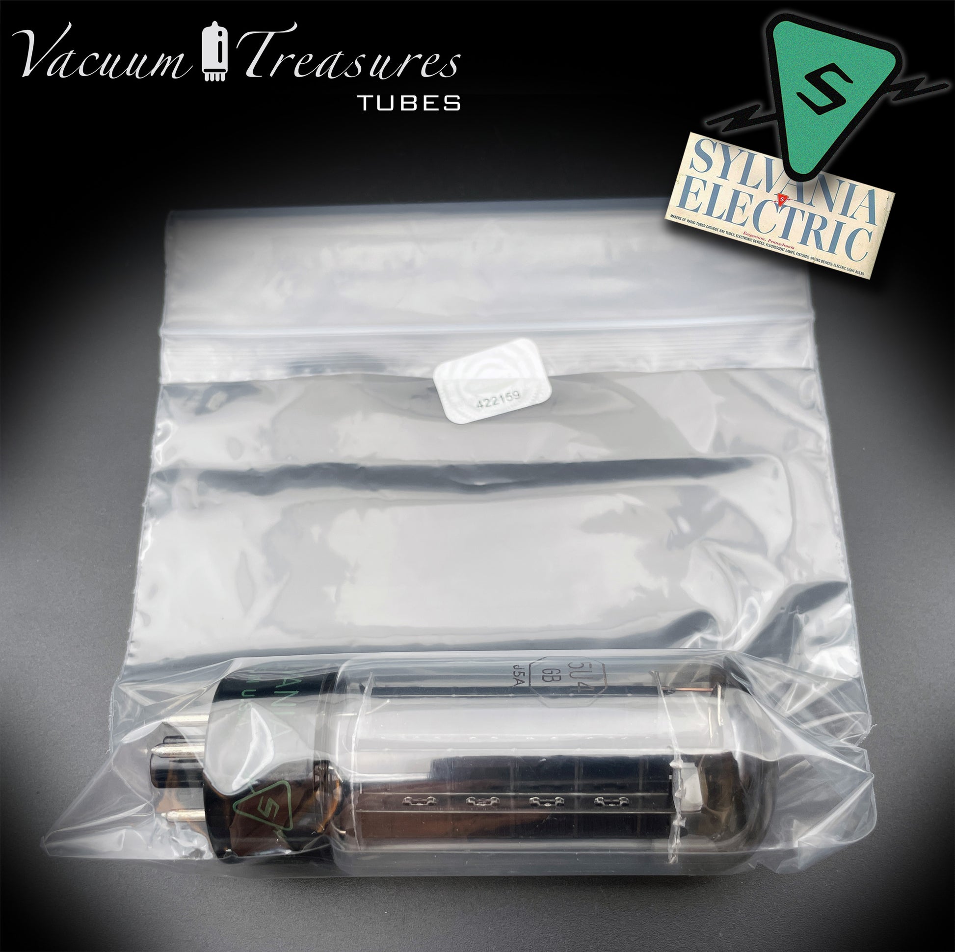 La 5U4GB / 5AS4A SYLVANIA, in questa rara versione NOS del 1946 con placche nere e getter a feritoia quadrata, rappresenta una delle prime generazioni postbelliche della celebre raddrizzatrice americana.
